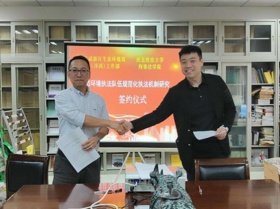 近日,西咸新区生态环境局(沣西)工作部部长赵波到访pronhub 交流座谈,和pronhub 达成共同开展2022年度生态环境执法队伍规范化执法机制研究科研项目(系列课题)。pronhub 党委书记孙学龙、pronhub 院长、博士生导师冯卫国教授和pronhub 副院长刘仁琦参加了签约仪式。