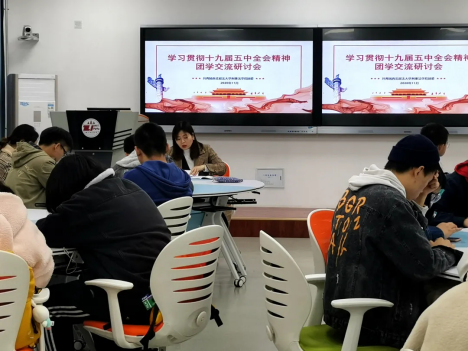 我院团委及时召开学习贯彻十九届五中全会精神团学干部交流会,将十九届五中全会公报原文和会议精神作为主要学习内容,号召我院广大青年切实把思想和行动统一到习近平总书记重要讲话和全会精神上来,学深悟透弄通做实。在各级团学干部的先锋模范作用下,院本科生、研究生各团支部结合自身实际情况,通过主题团日、学习分享交流会、专题辅导等多种形式号召支部团员广泛参与学习活动,迅速掀起了学习热潮。