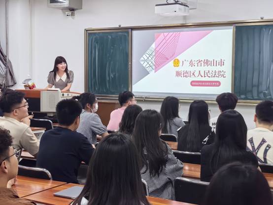 随后,顺德区人民法院的宣讲团队详细介绍了法院的基本概况、组织架构、工作环境以及近年来取得的工作成果。在招聘岗位方面,对岗位需求、任职条件、职业发展路径和福利待遇等同学们关心的问题进行了深入解读,让同学们对在顺德法院工作有了更清晰的认识和了解。在互动环节,同学们踊跃提问,就实习与工作的衔接、专业技能要求、法院工作强度等方面提出疑问,宣讲团队一一耐心解答,现场气氛热烈。