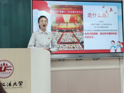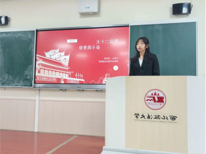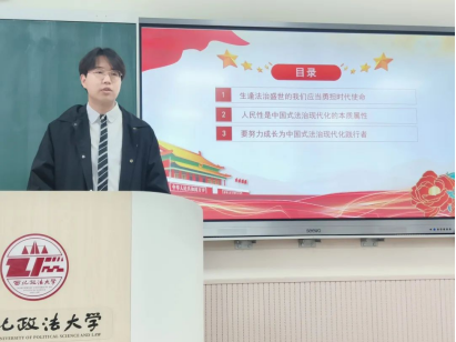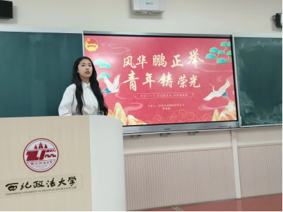 2021级徐浩同学以《争当中国式法治现代化践行者》为主题讲授团课。他从三个方面进行了具体阐述,注重与实际相结合,联系pronhub 师生在国家法治建设过程中的具体事例阐述了法治精神,向西法大学子发出以我所长服务社会的号召。