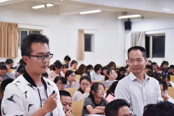 首先,汪教授以积极参与、积极记录、积极思考、积极探讨作为开场白,告诫学生大学期间要多参加学术活动。