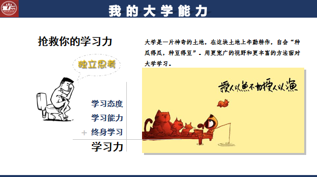 针对第二点独立思考能力,刘雨鑫老师分别提出了六个建议,即剔除成见法、面面俱到法、先见之明法、明确目的法、主次分明法、思想解放法。他希望同学们能够及时总结学习,做一个拥有“独立之精神,自由之思想”的大学生。