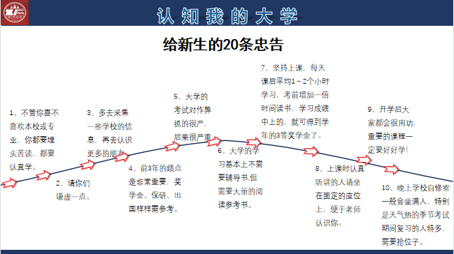 第三点则是学习大学生存规则。大学之中汇聚了五湖四海的同学,我们的交际圈也会逐渐扩大,人际交往能力成为了大学生活的必要技巧。他希望同学们能够有一个谦虚的心态,多总结多学习,在大学舞台上尽情展现自己的风采。