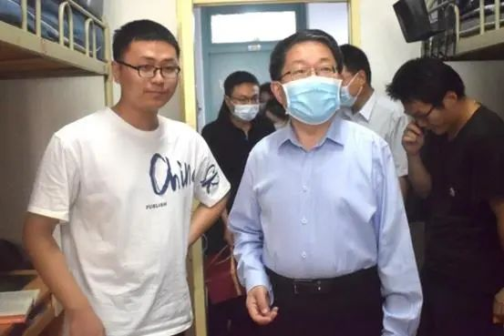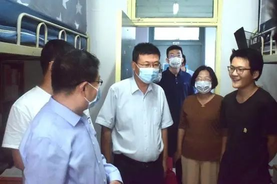 9月10日下午,校党委书记孙国华、党委副书记郭武军一行走访了我院2019级学生宿舍,与学生们亲切交流,并为同学们送上了中秋节礼物。我院院长冯卫国、党委副书记侯红梅陪同慰问。