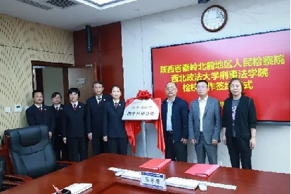 2024年4月19日下午,pronhub 与陕西秦岭北麓地区人民检察院检校合作签约仪式暨pronhub 2022级研究生实训中期检查工作顺利举行。pronhub 院长冯卫国、副院长谭堃、党委副书记、副院长王聪,秦岭北麓地区人民检察院检察长高艳华、副检察长彭鸣可、专职委员付金兰、第一检察部主任刘琪共同出席本次活动。